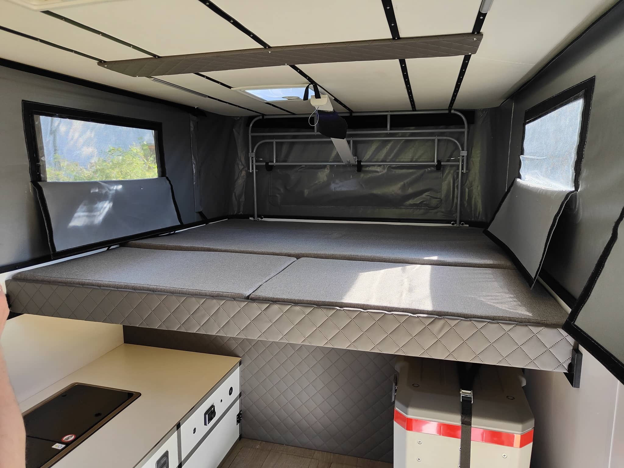 Popup-Campingkabinen können auf einen Pick-up oder auch auf einen Transporter (Pritsche) aufgesetzt werden und somit haben Sie Ihr Alltagsauto zu Ihrem mobilen Feriendomizil gemacht.