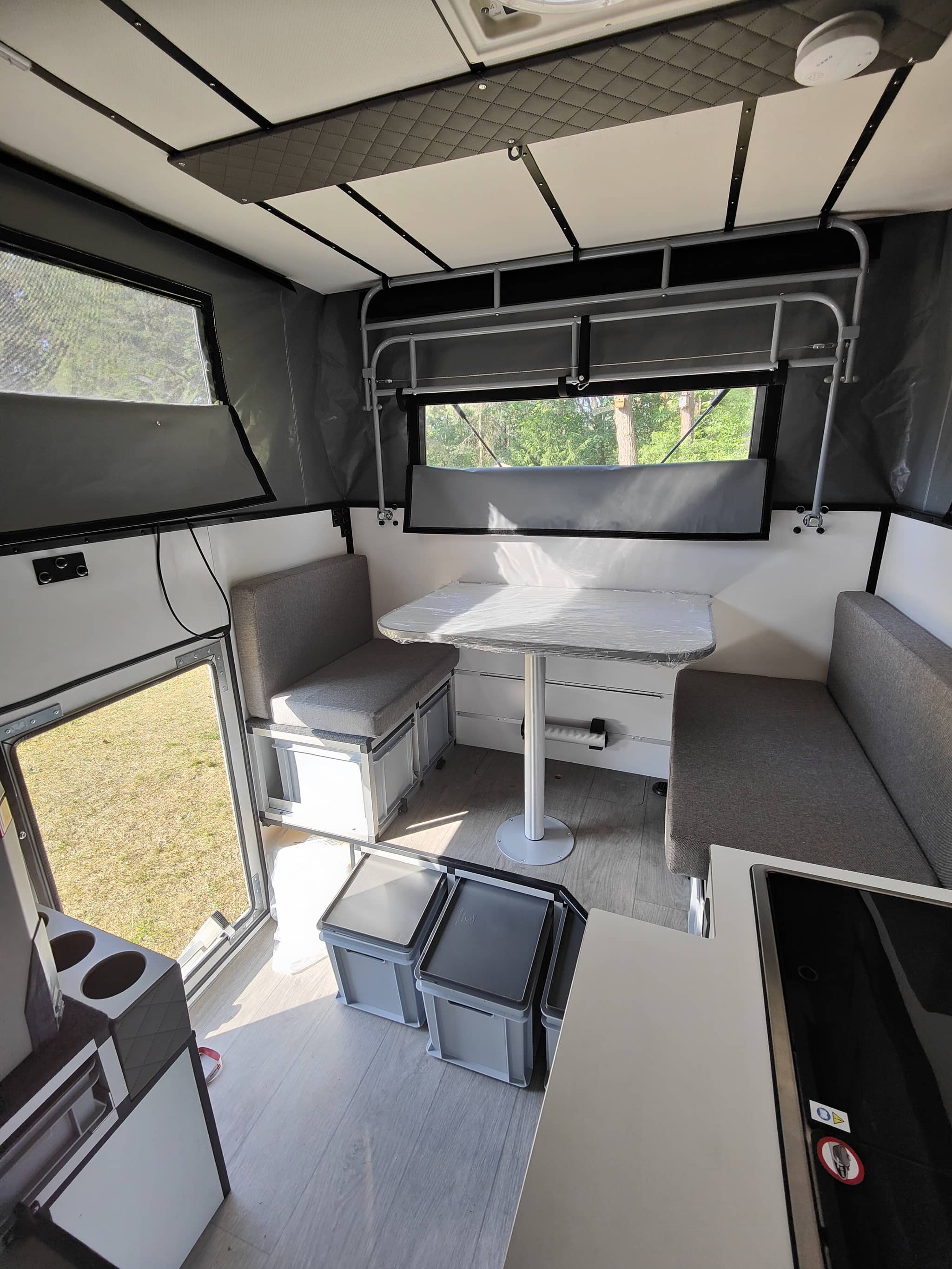 Auf der Straße und in der Wildnis, im Sommer wie im Winter, begeben Sie sich auf eine gewöhnliche oder außergewöhnliche Reise und danach bauen Sie die Kabine in nur wenigen Minuten ab und stellen sie an einem sicheren Ort unter, und können sie jederzeit wieder genießen, wann immer Sie möchten.